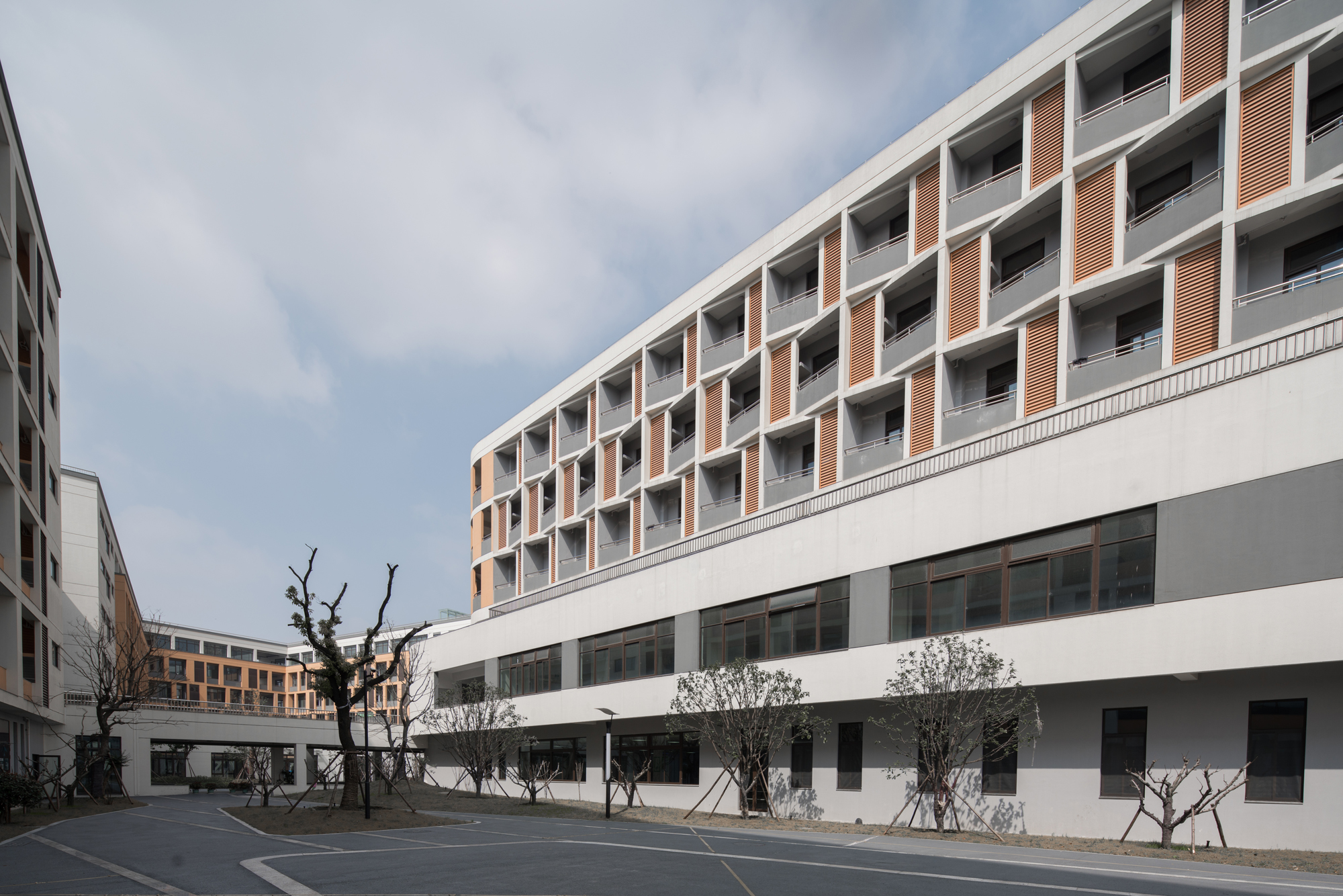 启源中学位于杭州市经济技术开发区下沙大学城北单元,规划为54班初级中学,总建筑面积为73845平方米。本次设计以构建多维纽带,启迪智慧之源为创意出发点,将校园建筑布成一条自北向南串起各个功能用房的纽带,紧密联系师生的教学生活。我们将校园架空层设计成多种功能混合体,既容纳学生交流,也展示学生作品,吸引家长参观,成为师生与家长之间的场所纽带。同时贯穿校园的共享平台,既作为交通廊道联系,又形成了各种相互渗透的庭院和平台空间,成为师生与环境之间的交流纽带。