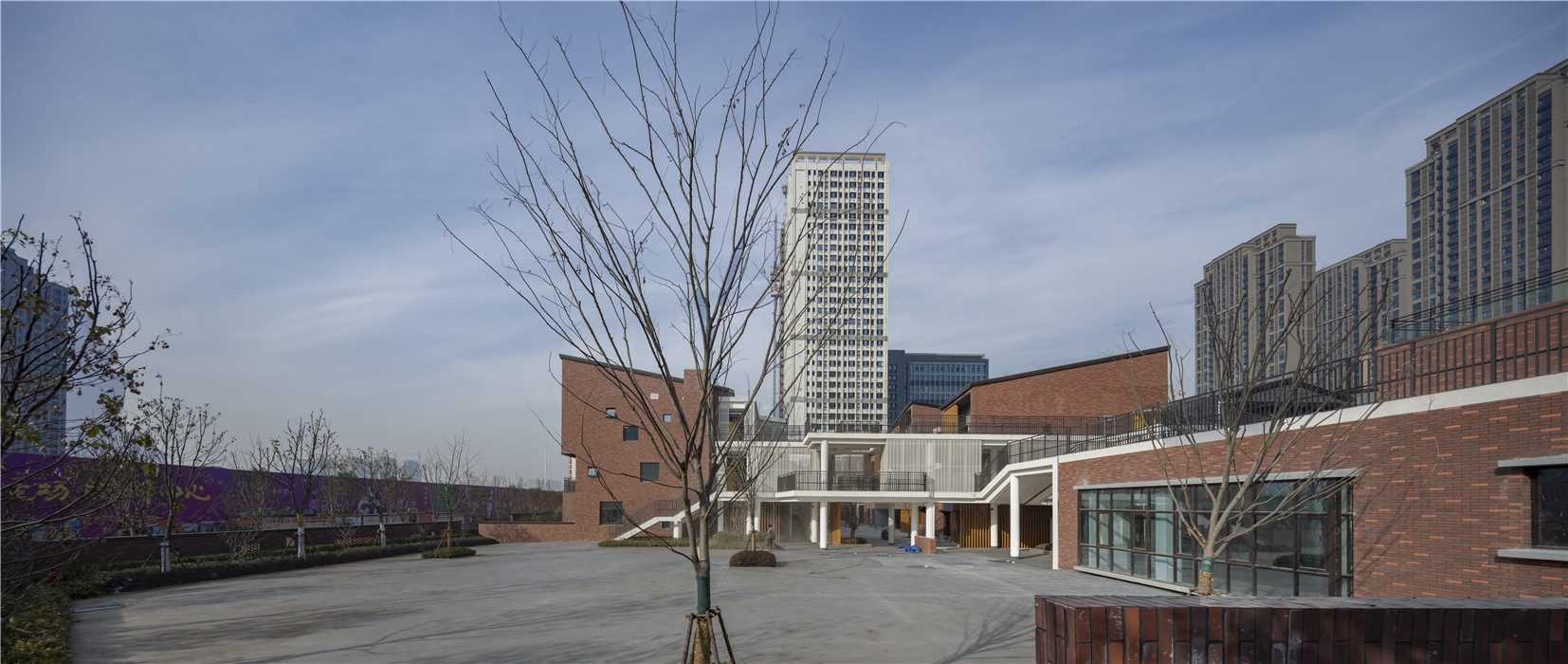 本幼儿园位于合肥信达天御项目的邻里中心地块东南角,平面布置摈弃紧凑型不举,建筑按功能分成八个体量,适当拉开距离以不同角度散落于基地内,形成小体量群落。体量间以变化的廊道若即若离地串联成整体。以此空间形式创造出丰富多彩的庭院空间和半室外灰空间,串联的廊道成为有趣的游走路线。借此给予孩子们关于中国园林化城市的启蒙知识。
