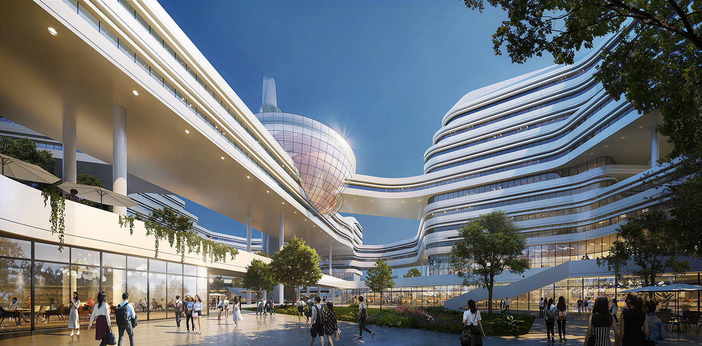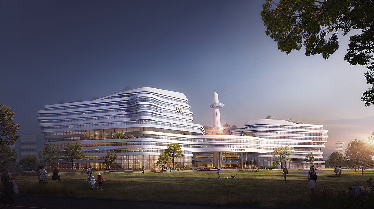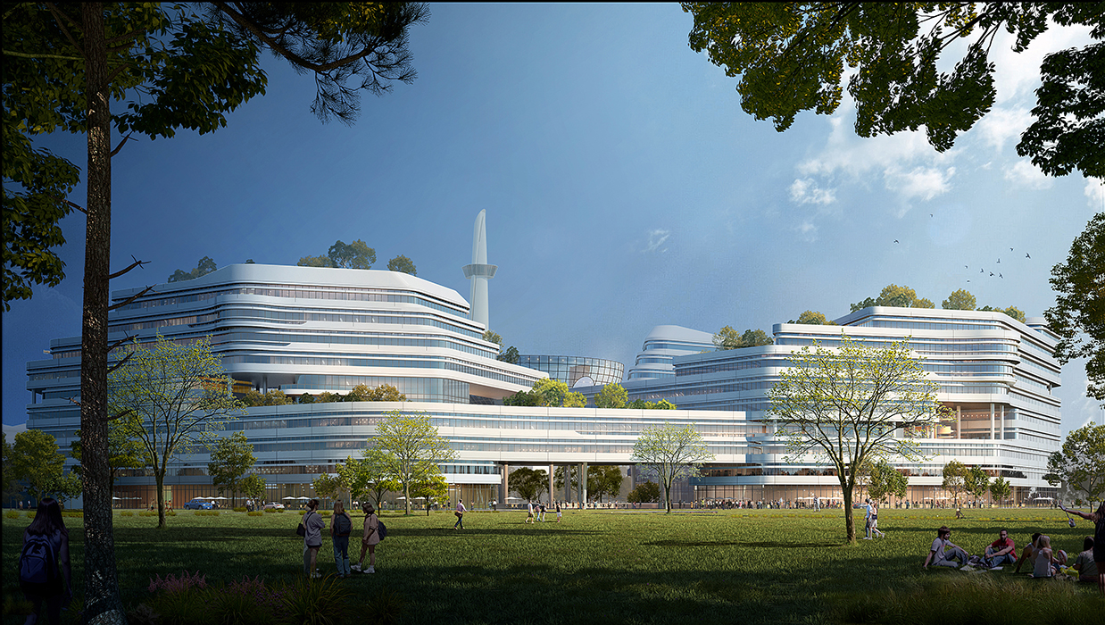 本项目位于东南大学九龙湖校区南北主轴线的西南侧,紧邻核心区的礼仪草坪,西南方向目前也为绿地,其他方向围绕各院系用房。项目为该校区最大的多学科综合大楼,设计以“漫步云间、共享科技”为设计理念,高低起伏的建筑形体宛若聚合的空中云团,曲线流畅的造型极具科技感与未来感。建筑造型独具一格,与现有建筑形成反差,既标新立异,又契合学校倡导的“多学科融合、理工文医综合、产学研结合、国际化联合”的学科建设思路。