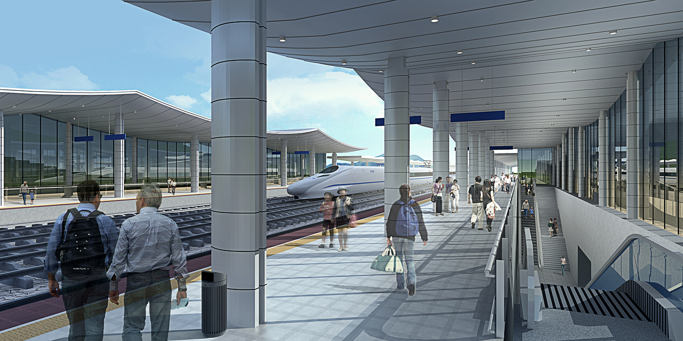 1. 充分利用区位优势,珍重自然环境,形成融于山水之间,站、景相融的车站总体布局。